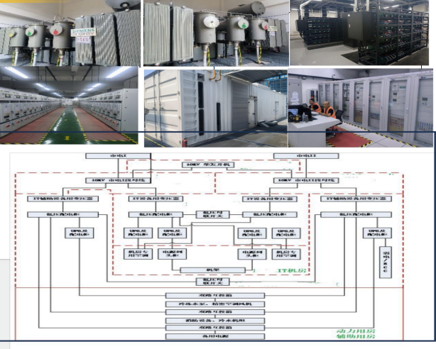 专用2N变压器 :2000KVA*4+2500KVA*12 u 2N UPS: 主机房IT设备供电采用UPS不间断 电源 ,采用2N架构 ,形成容错保护, 单路电池备 用时间为15min 。