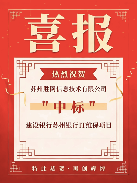 近日,苏州胜网信息技术有限公司(以下简称“苏州胜网”)凭借卓越的技术实力、完善的服务体系与丰富的金融行业实践经验,在激烈竞争中脱颖而出,成功中标中国建设银行股份有限公司苏州分行IT系统维保服务项目。此次中标标志着苏州胜网在高端金融信息技术服务领域取得了又一重大突破,是公司与大型国有商业银行深化合作的里程碑。