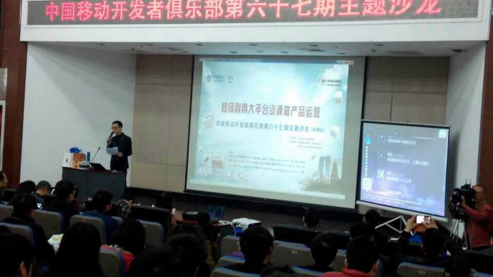 2014年12月4日,中国移动互联网基地主办的“移动开发者俱乐部”走入苏州,同时邀请了知名渠道(360、 百度)、发行、CP、第三方服务机构一起探讨“如何利用大平台资源做产品运营”,为大家解决产品运营路上的燃眉之急!