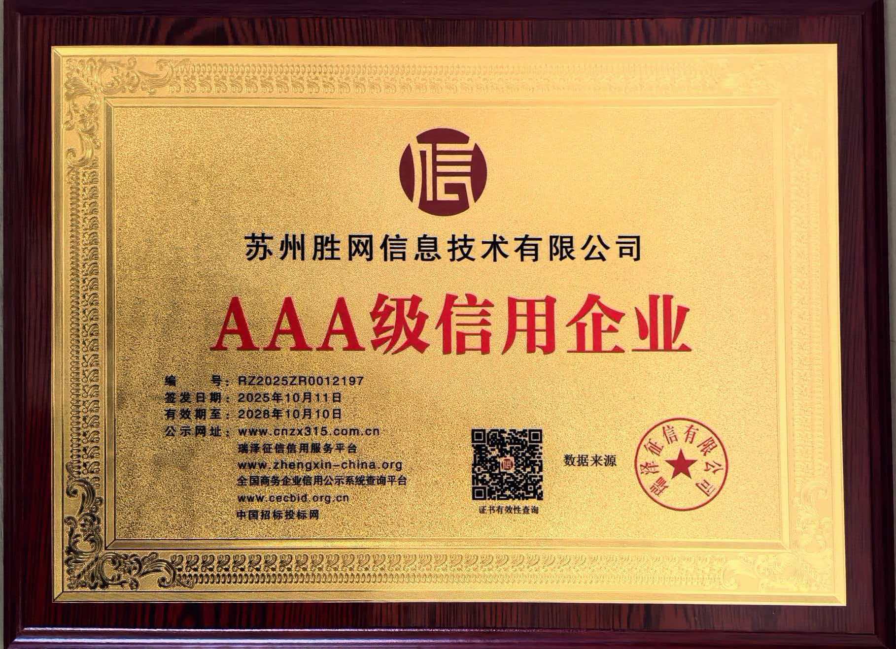 在数字经济蓬勃发展的今天,信用已成为企业核心竞争力的重要组成部分。近日,苏州服务器托管行业传来喜讯,本土知名IDC服务商苏州胜网凭借卓越的信用表现,荣膺“AAA级信用企业”和“守信经营承诺单位”双项重量级信用认证,这不仅是对企业诚信经营的肯定,更是苏州打造数字经济高地的重要里程碑。